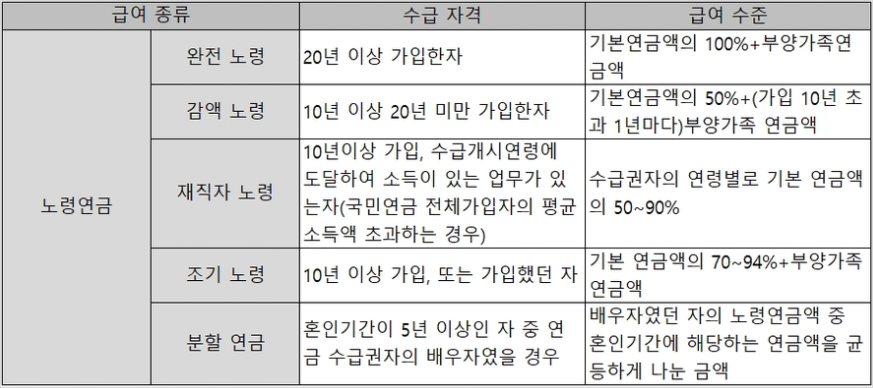 경제활동을 할 수 있는 시기에 모든 사람으로 부터 보험료를 납부받은 다음 가입자가 일정 나이가 되거나 갑작스러운 사망 또는 장애를 입게 되었을 때 본인이나 유족들에게 연금의 형태로 지급되어지는 것이 국민연금입니다.