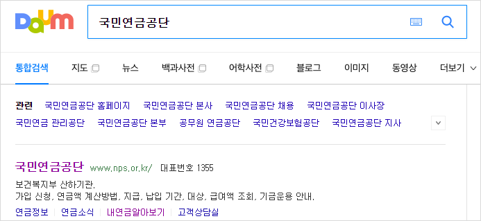 먼저 포털사이트 검색창에 국민연금공단을 검색하여 제일 위에 나오는 국민연금공단 홈페이지를 클릭해줍니다.