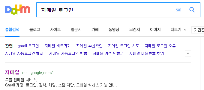 먼저 자주 이용하는 포털사이트의 검색창에 지메일을 검색해줍니다. 그러면 제일 상단에 지메일에 접속할 수 있는 링크가 나오니 바로 눌려서 접속해줍니다.