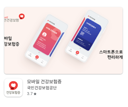 - 스마트폰에서 '모바일 건강보험증' 앱 검색 및 설치