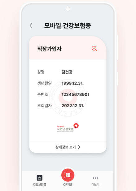 - 앱 내에서 필요할 때마다 건강보험증 화면 제시 가능