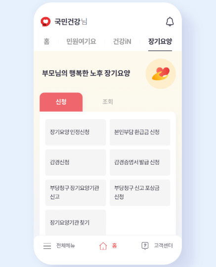 또한 장기요양 인정서 발급 신청 등 일부 행정서비스도 앱 내에서 가능합니다.