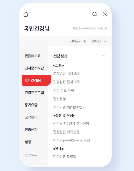 공단 건강검진을 받은 내역도 앱에서 확인할 수 있습니다.