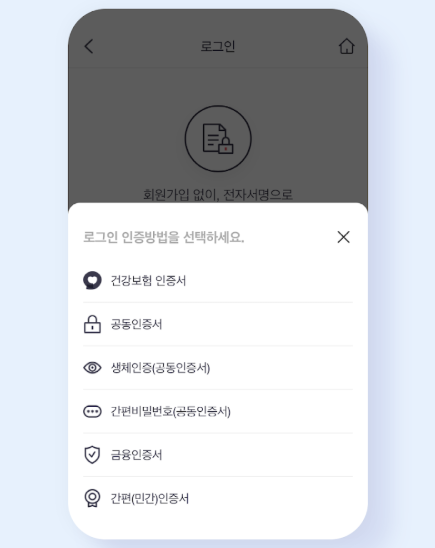 로그인이 필요한 만큼, 반드시 본인 명의 휴대폰이어야 하며, 공동인증서가 있을 경우 더 빠르게 인증이 가능합니다.