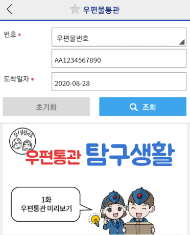 - 앱 실행 후 메인화면 개인통관고유부호 조회/발급 터치