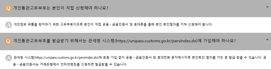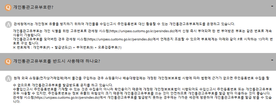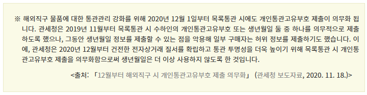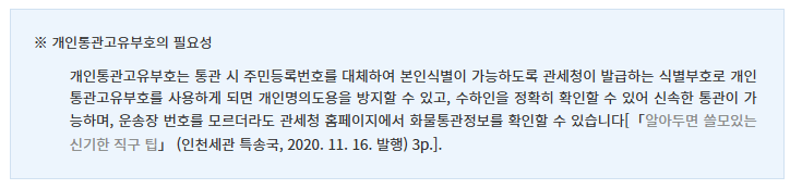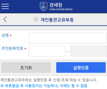 📌 주민등록번호 유출 방지를 위해 관세청에서 의무화한 제도입니다.