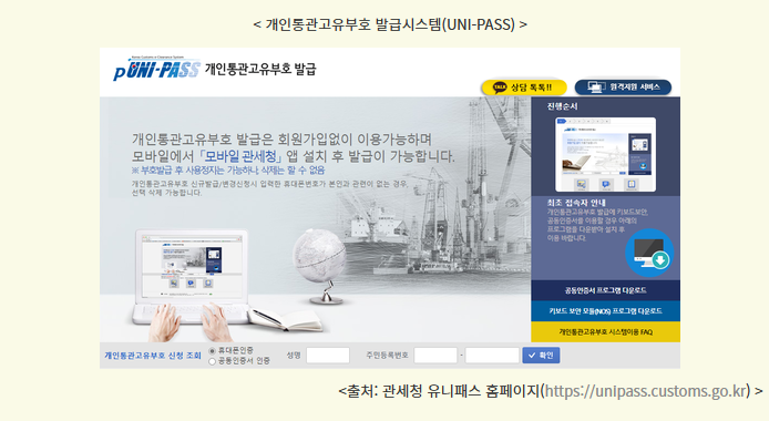 - 관세청 유니패스 접속, https://unipass.customs.go.kr/csp/persIndex.do