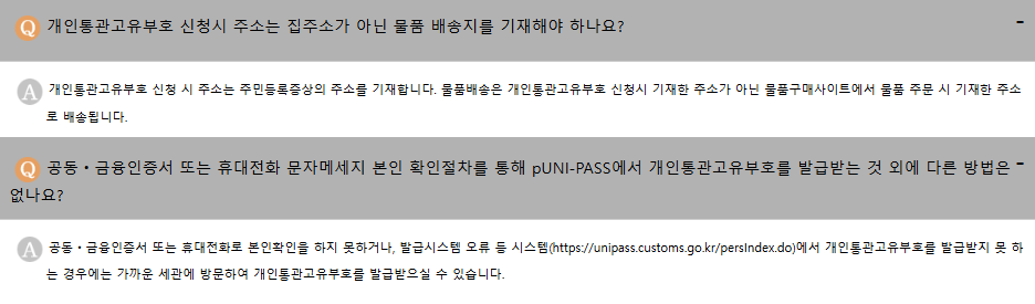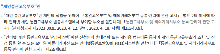 - 개인통관고유부호는 해외직구 필수 코드이며, 유니패스 웹사이트 또는 모바일 관세청 앱을 통해 조회 가능