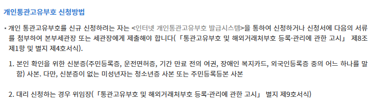 대한민국 국민이라면 누구나 발급 가능하며, 해외직구, 해외배송 대행지 이용 시 필수로 요구됩니다.
