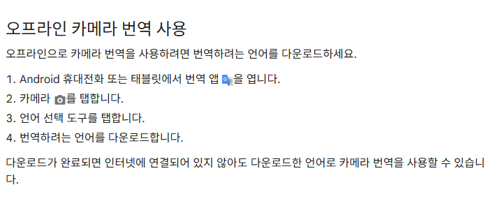 📌 참고: 카메라 기능은 오프라인 언어팩 다운로드 시, 인터넷 없이도 작동합니다.